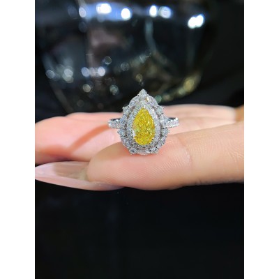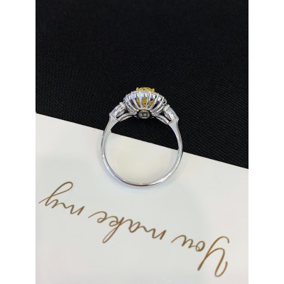 The design is simple yet elegant, perfectly showcasing the splendor of the yellow gem and the brilliance of the diamonds